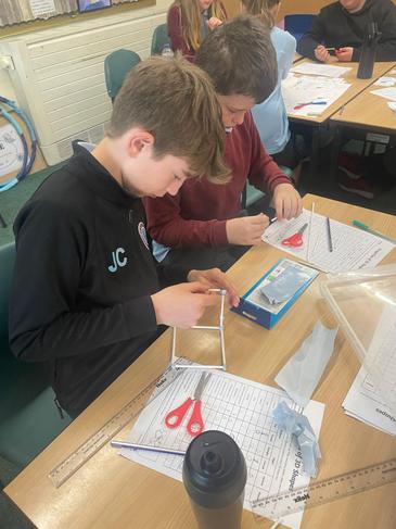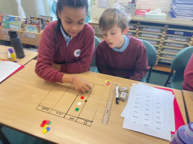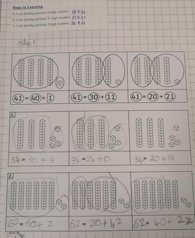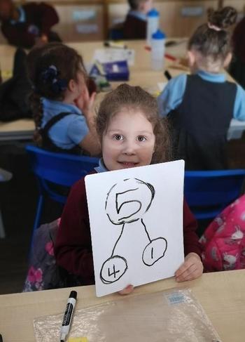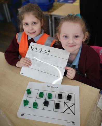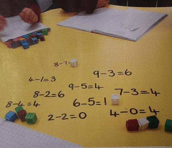 Using a five frame and two different coloured cubes to explore different ways of making 5