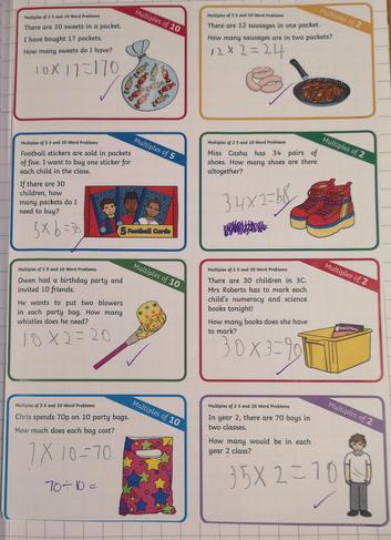 Multiplication problem solving - 2, 3, 5 and 10 times tables