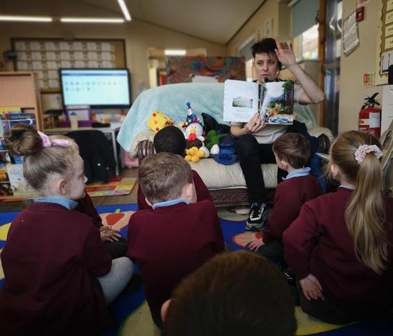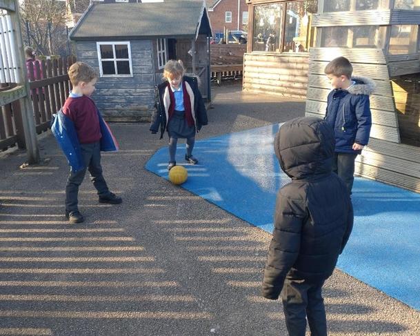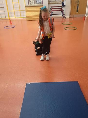 Learning how to do an underarm throw with Coach Tyler in our PE lesson.