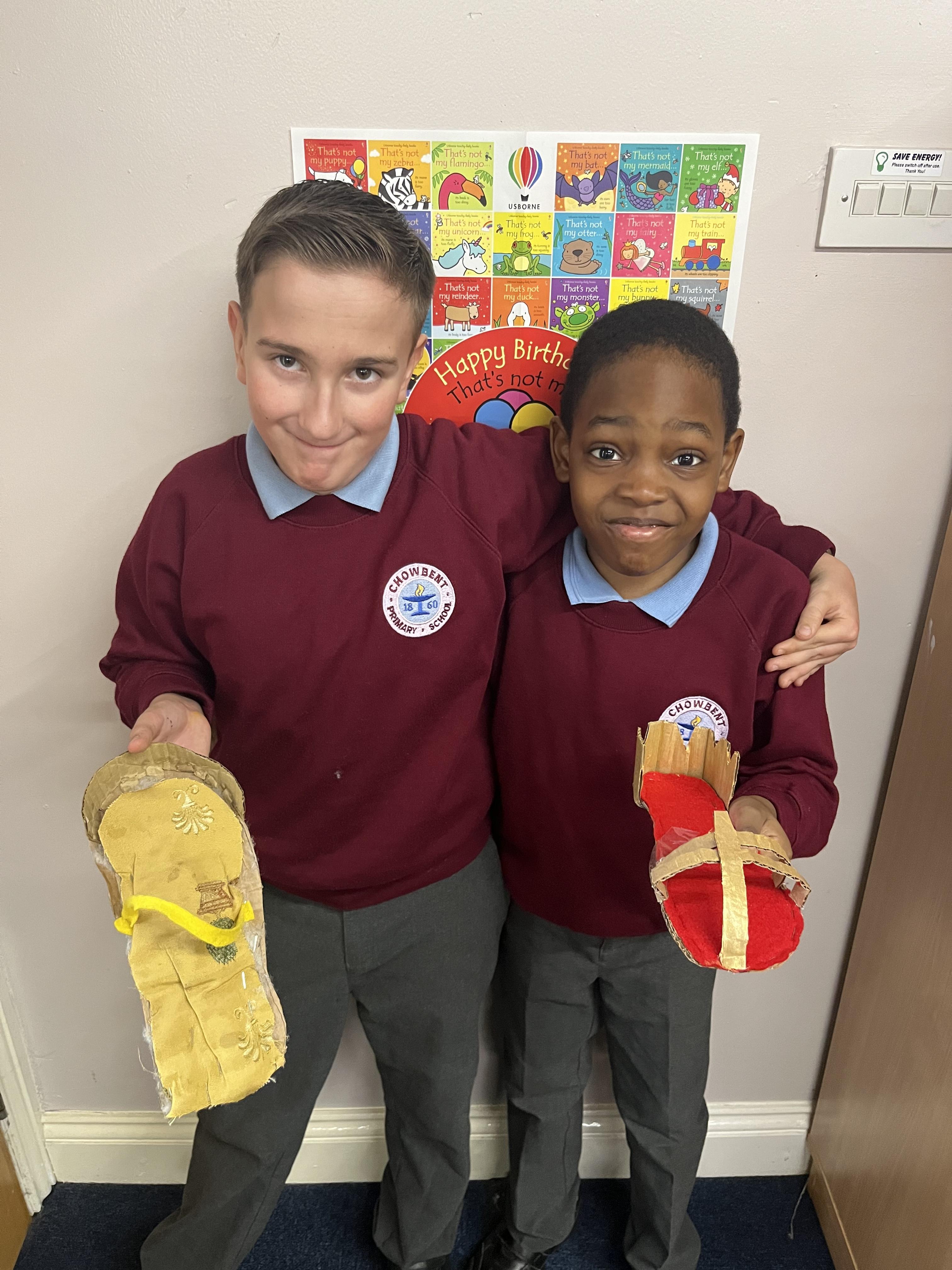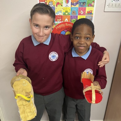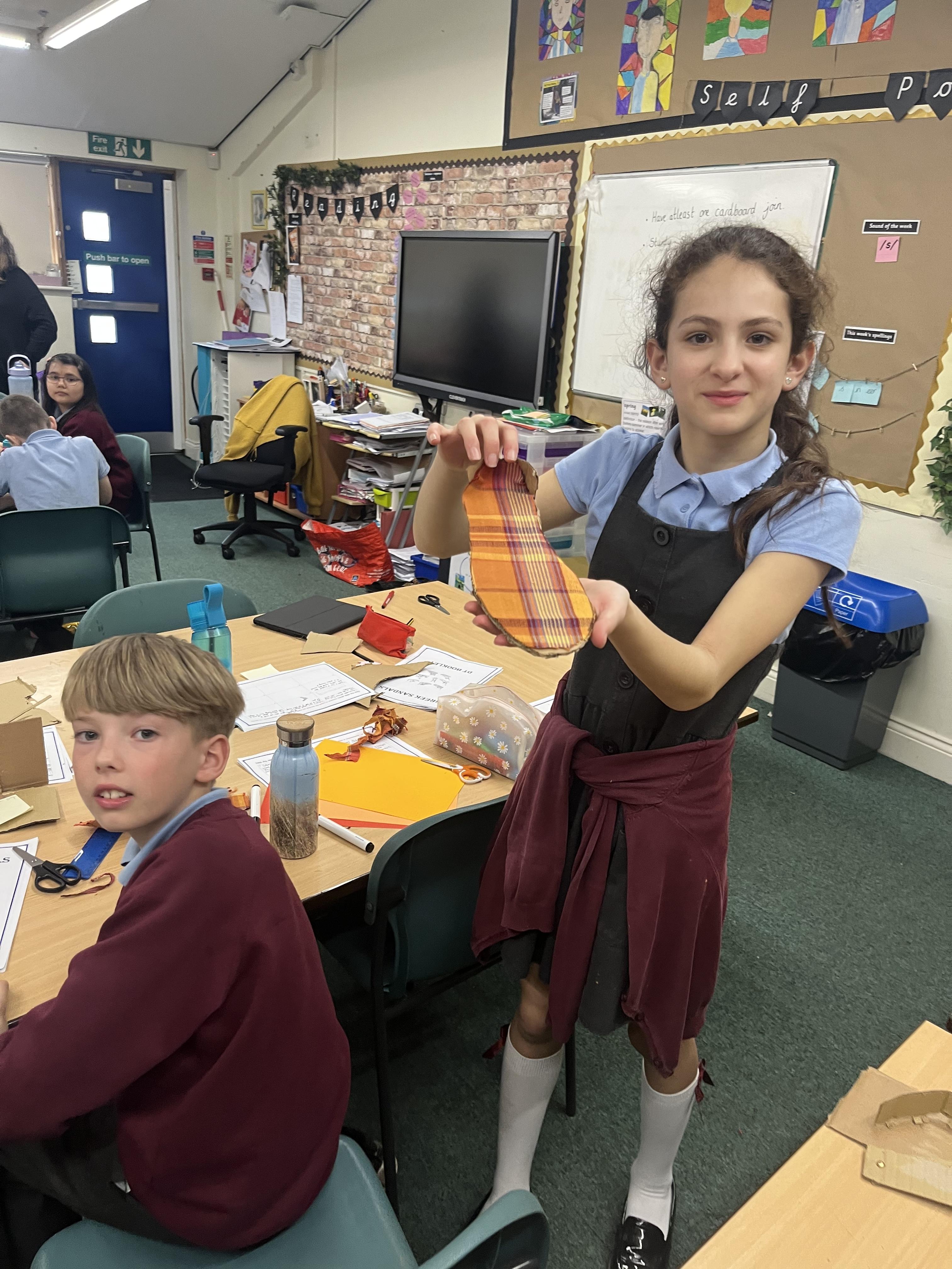 Linked to their topic of The Ancient Greeks the children made some very fetching sandals.