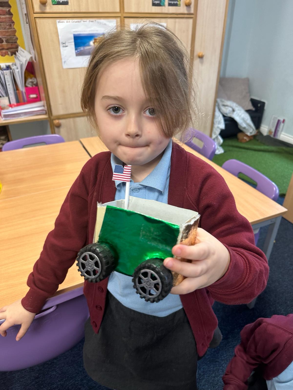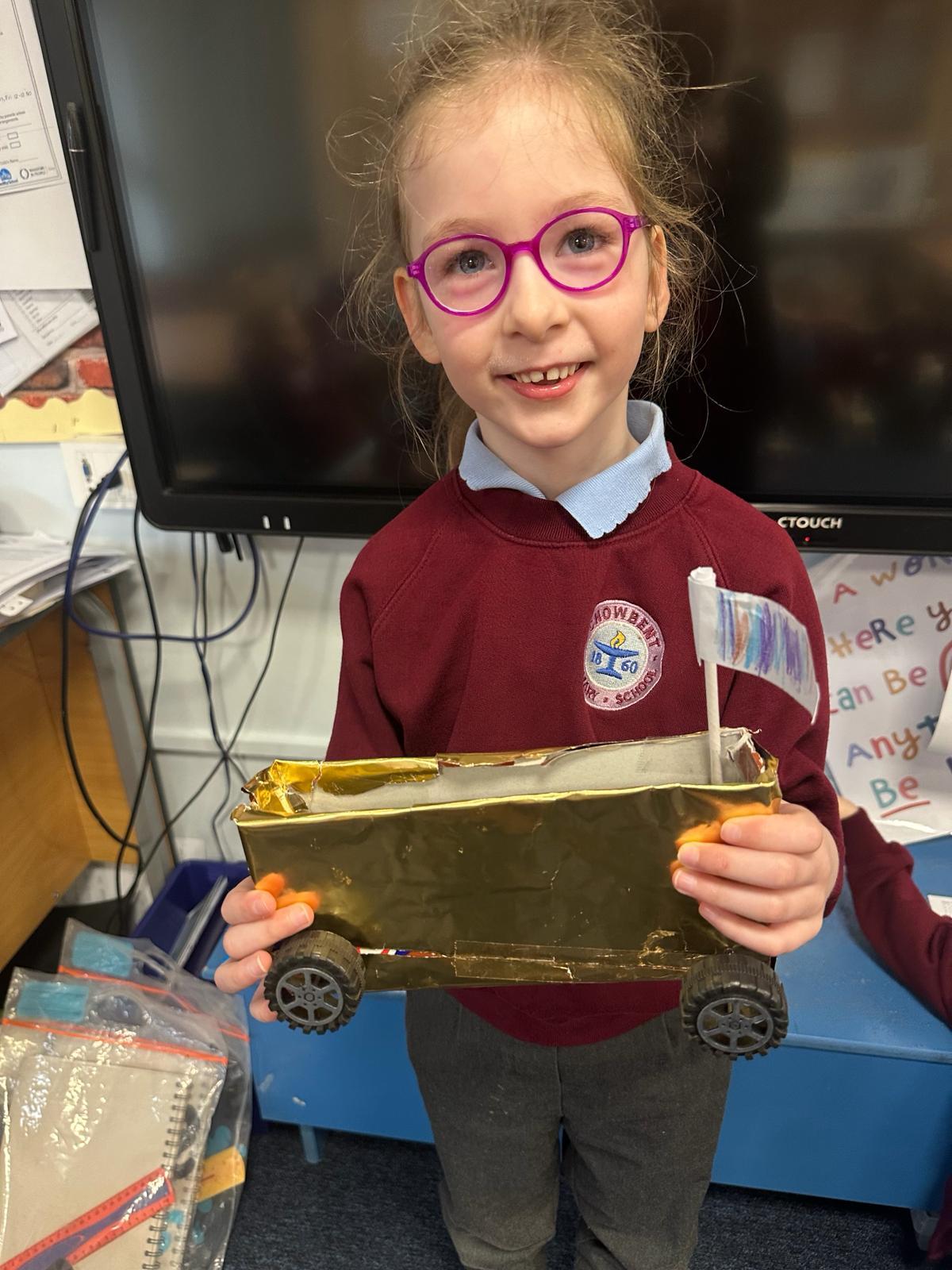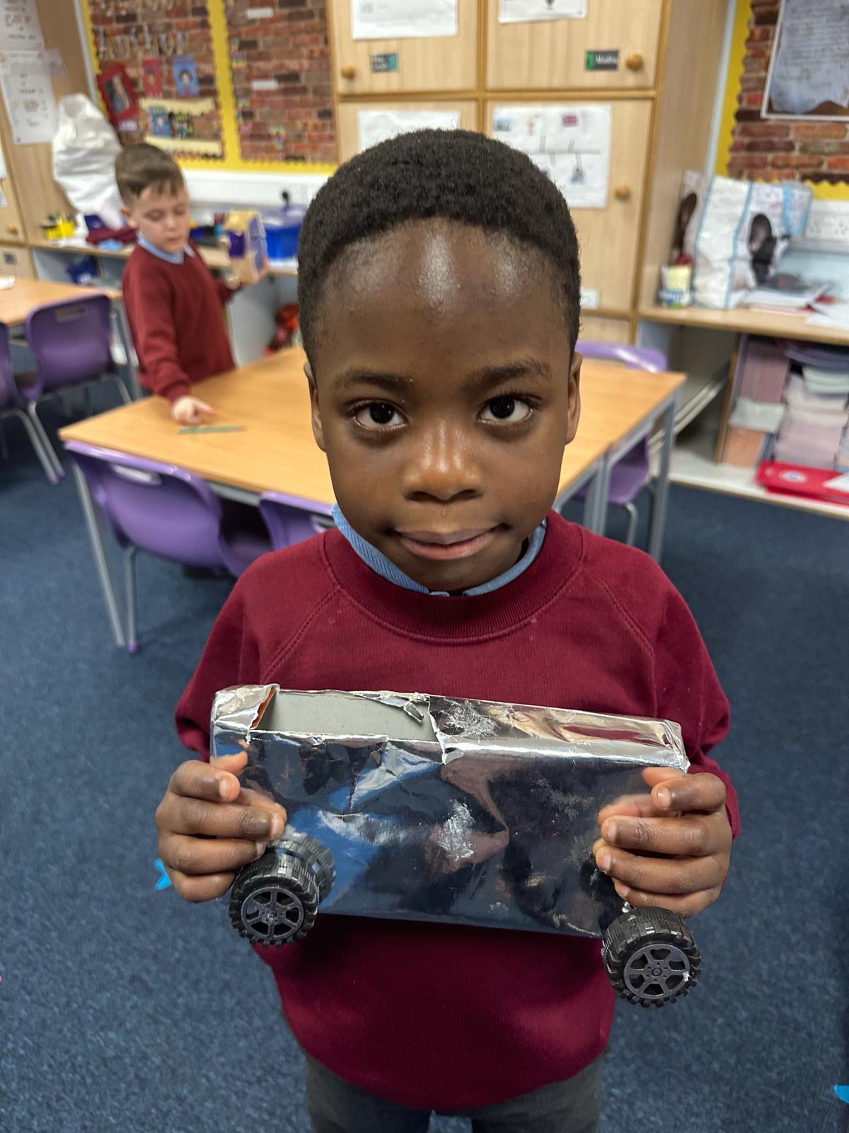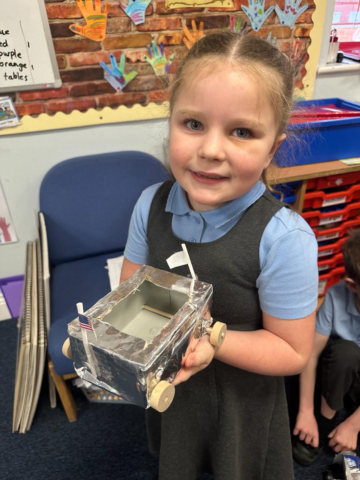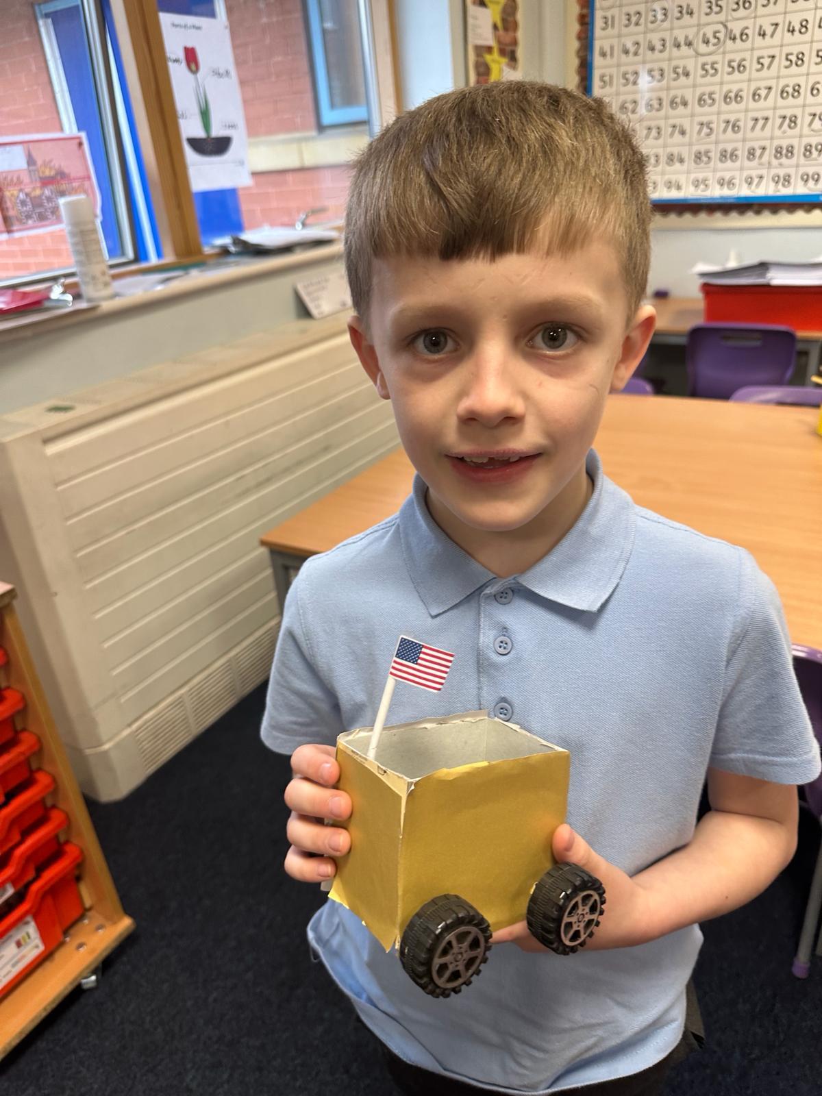 Linked to their topic of ‘Explorers’, the children were tasked with the challenge of creating a moon buggy that could have been used during the moon landing of 1969 to carry rocks. Look at their amazing vehicles below.