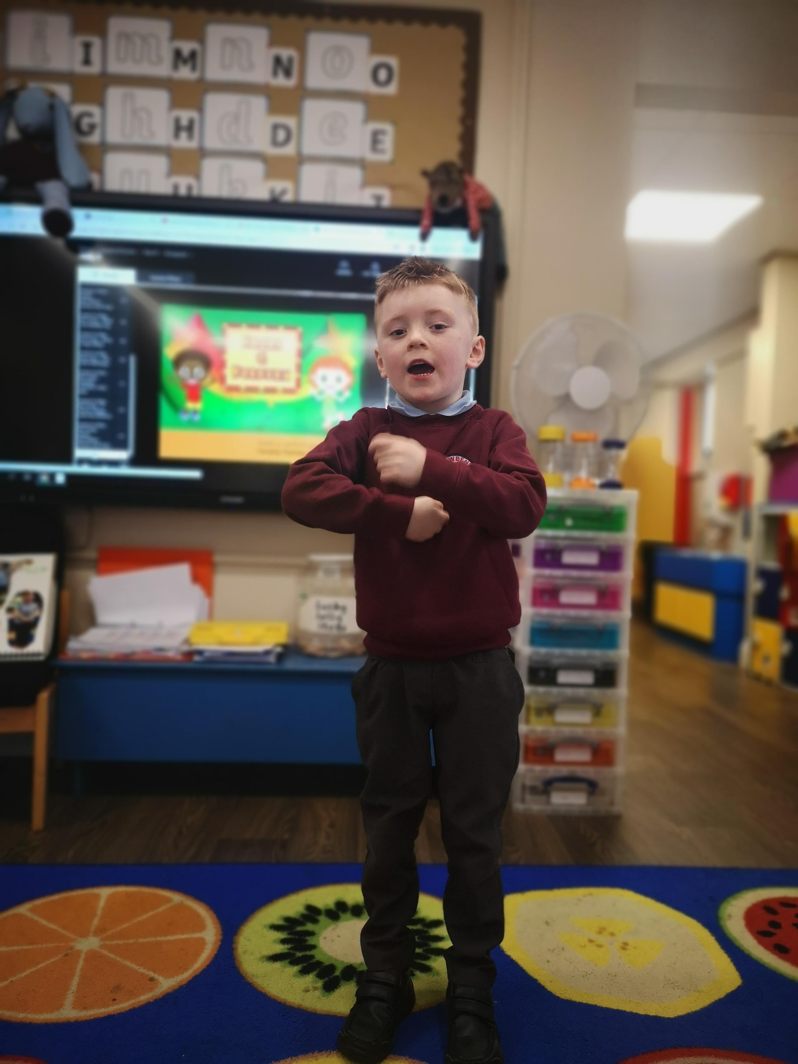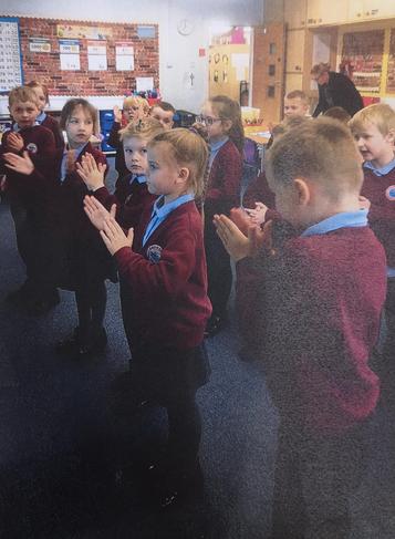 Year 5 performing 'Look Into The Night' for our Reception class audience.