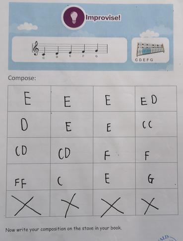 We composed our own melody, using the �� Big Bear Funk �� backing track. We used the notes C and D and even tried to play our composition on the chime bars too. We hope that you enjoy listening to our composition!