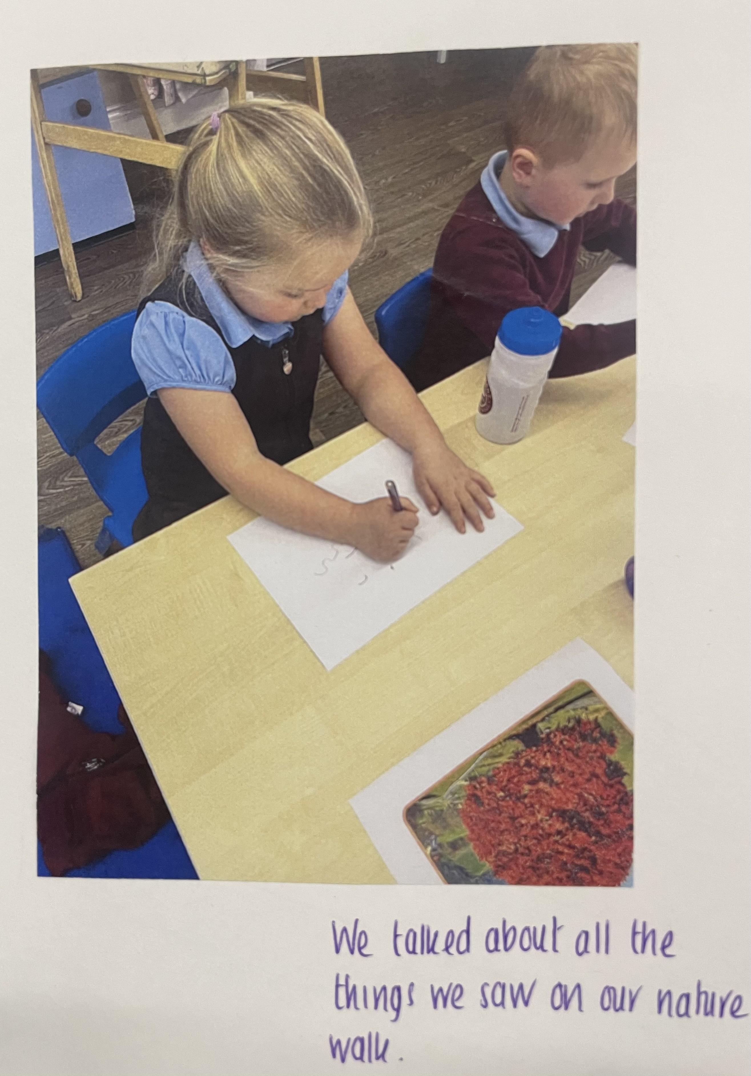 In drawing, they have been inspired by their observations of our environment when taking a walk around our outside environment.