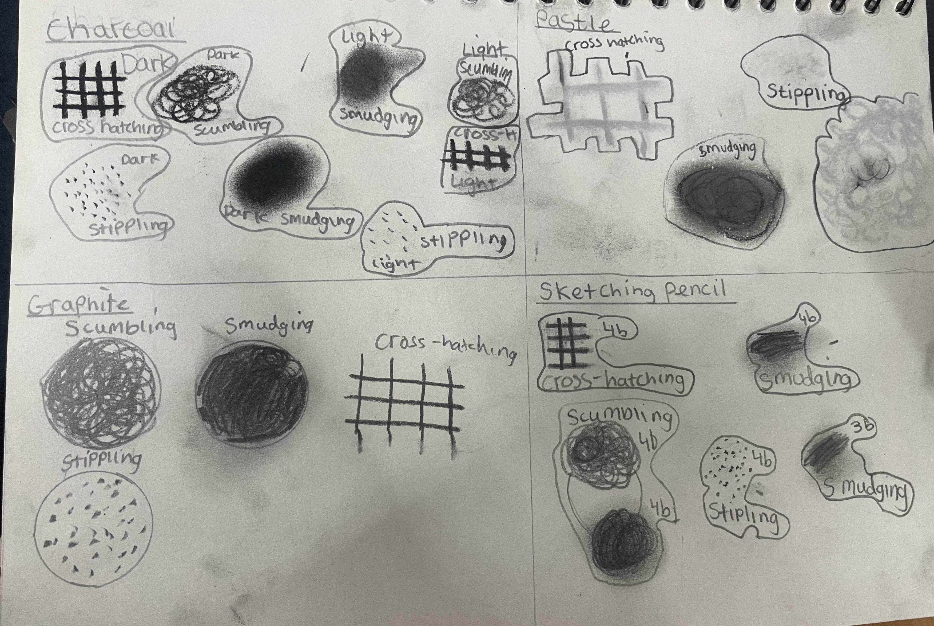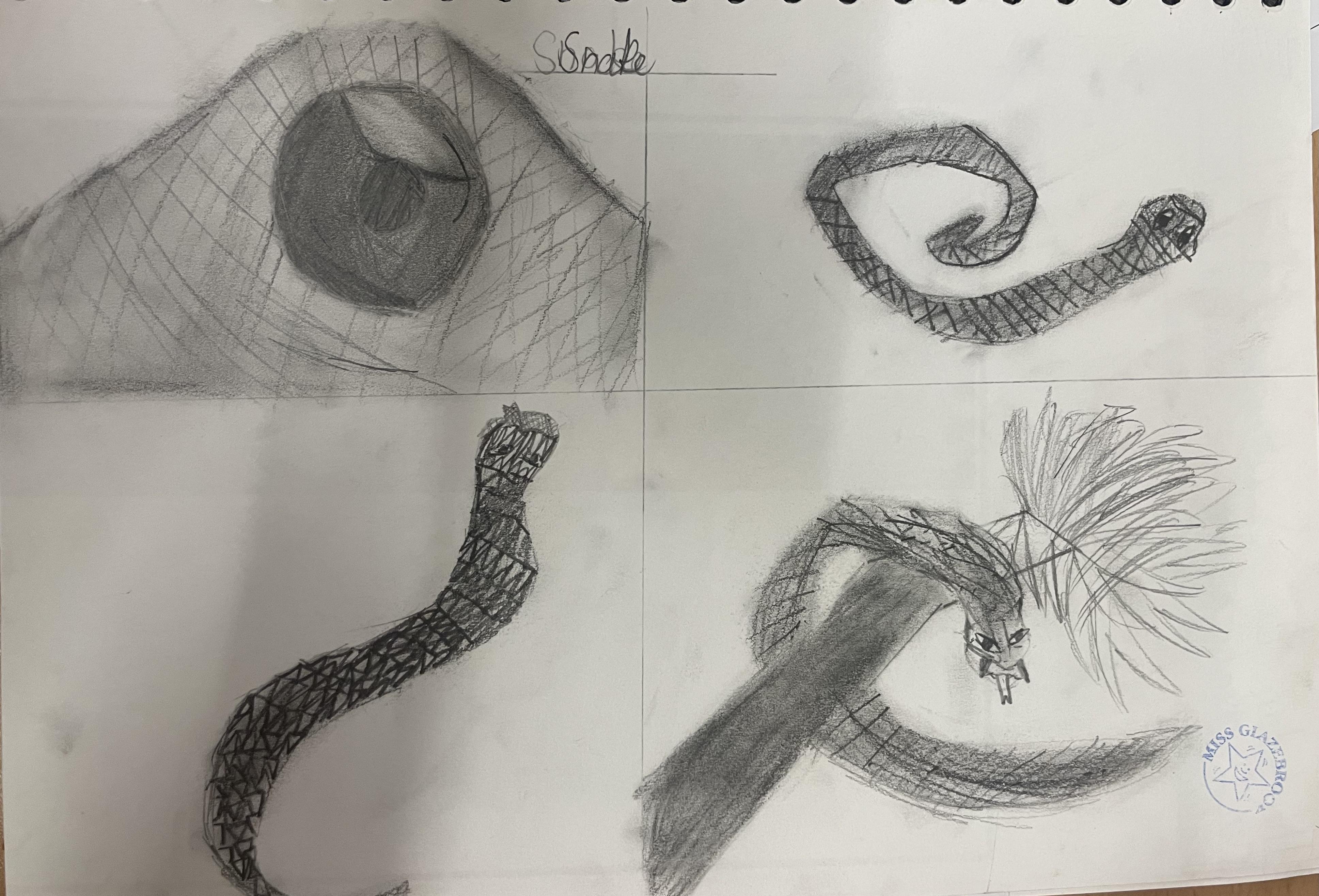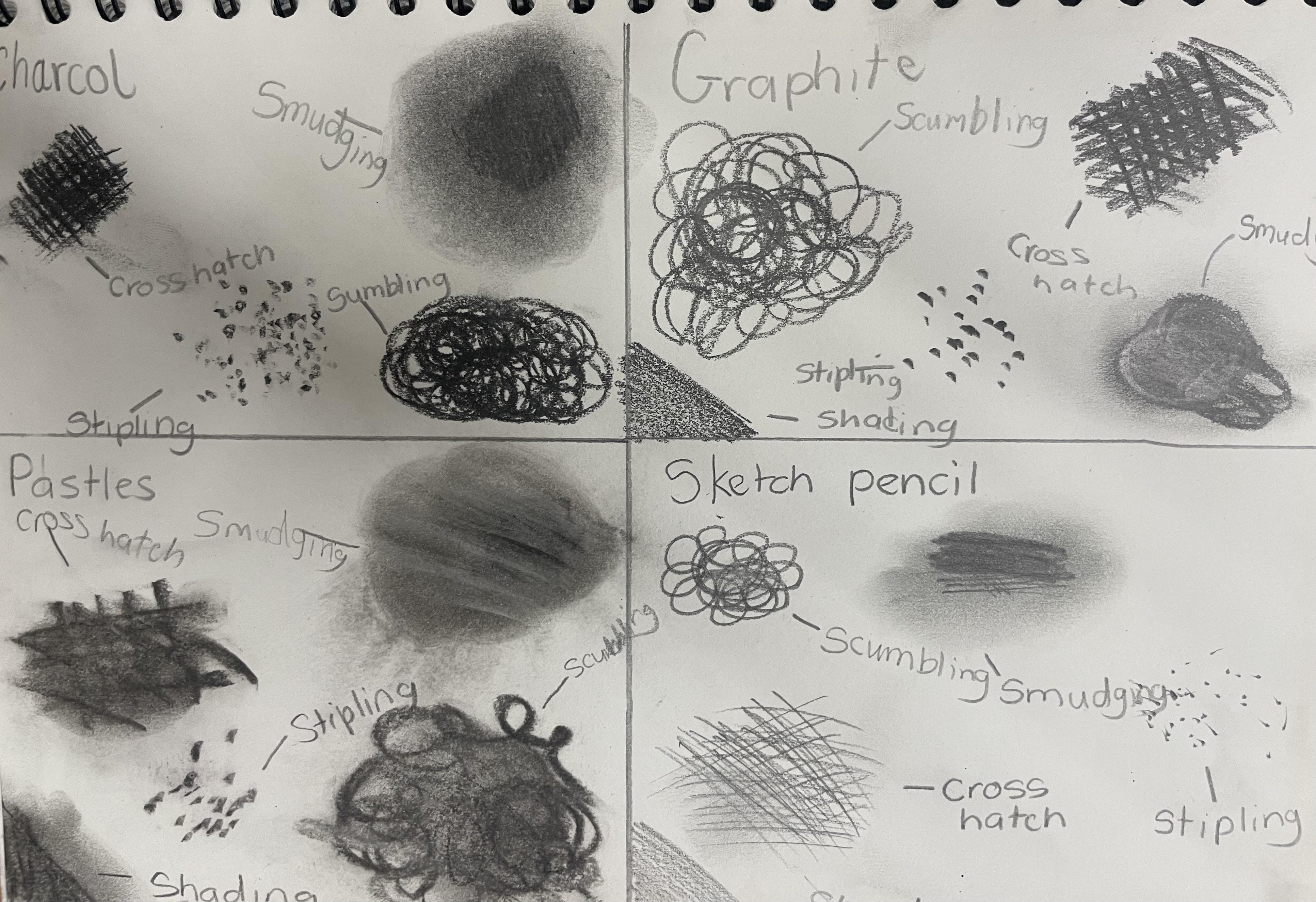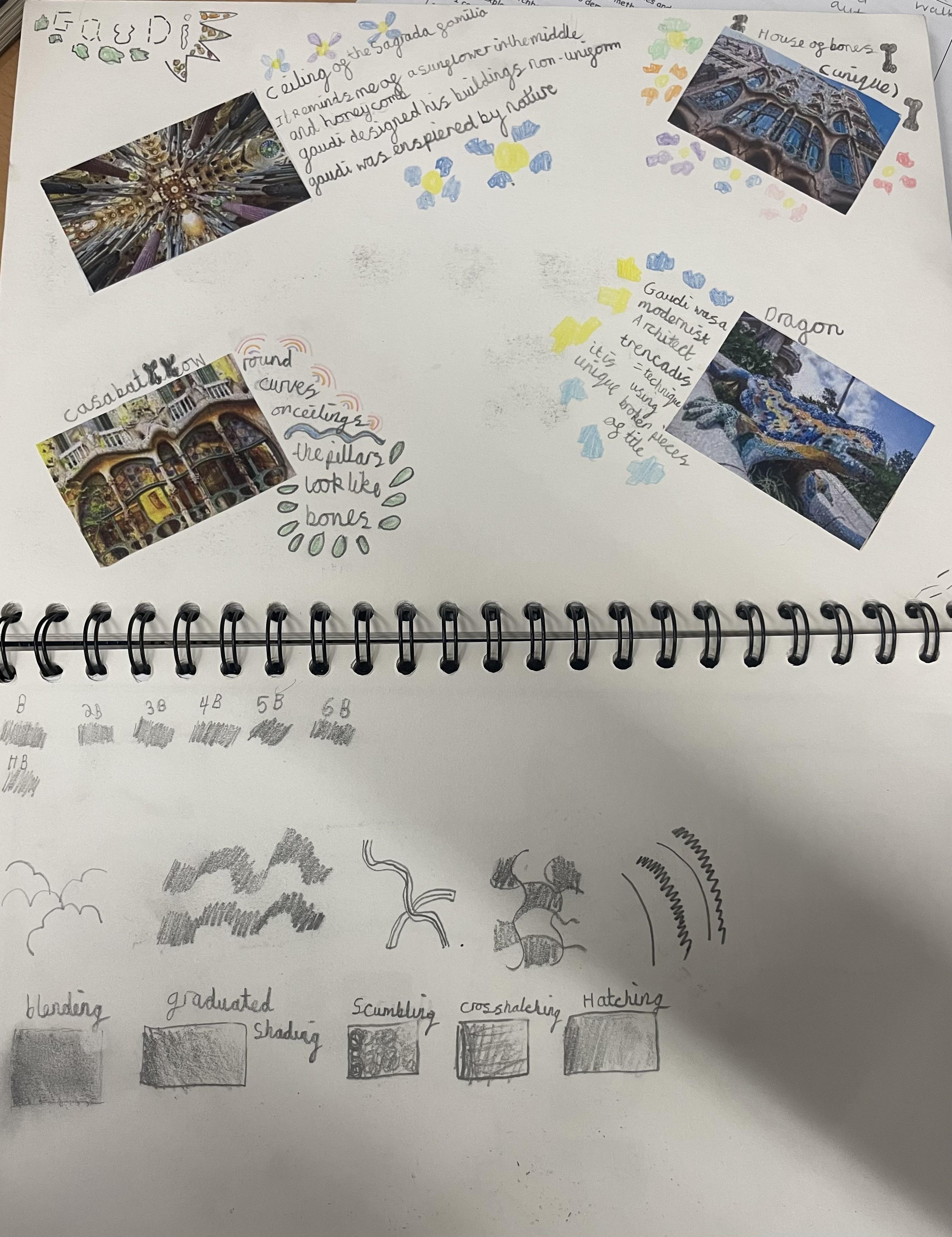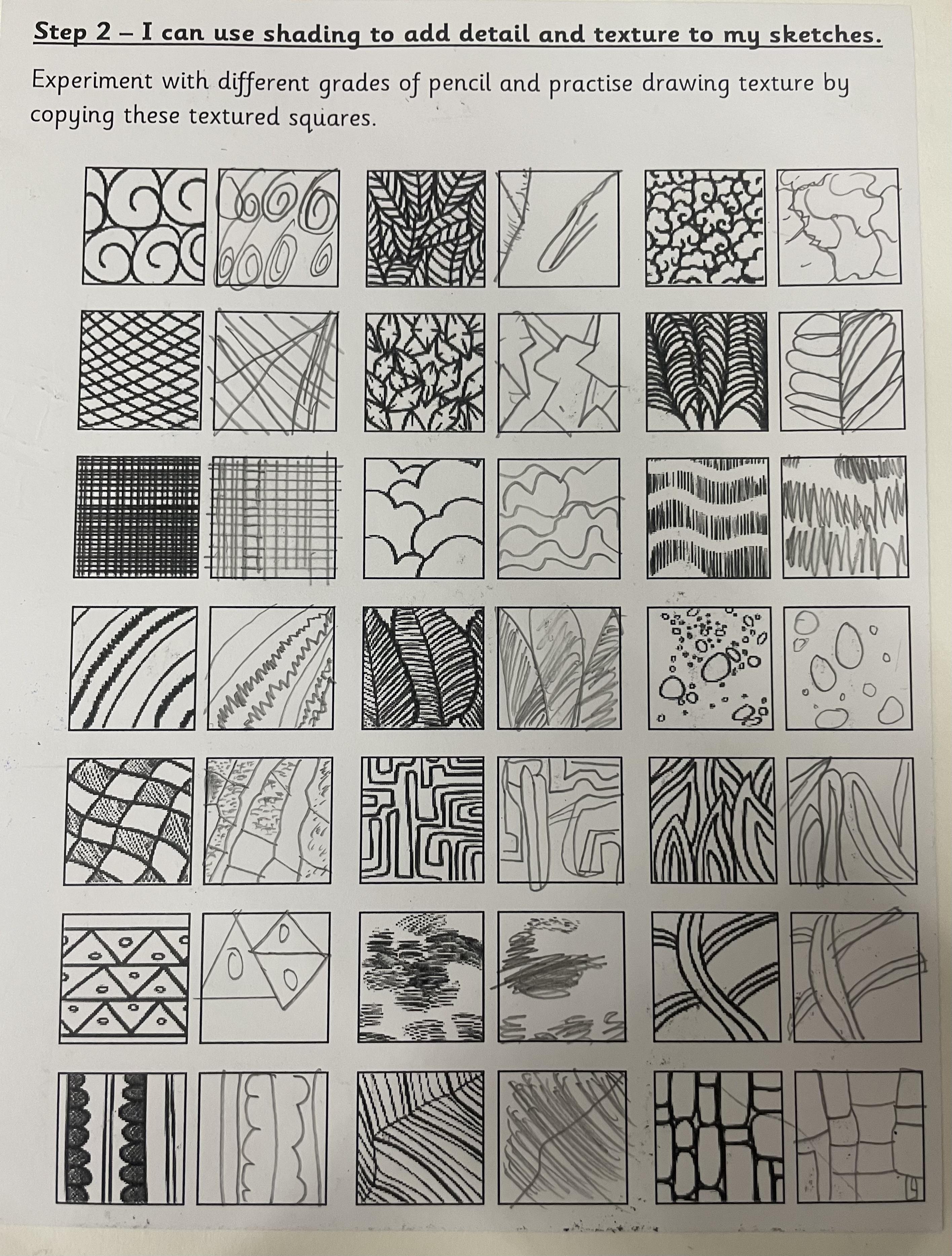 In years 5 and 6, pupils build upon the sketching skills taught in previous years. They continue to experiment with different shading techniques such as hatching, cross hatching, scumbling, random hatching and ink wash to create shade and tone as well as trying to create texture in their drawings. They also apply these techniques when using materials such as charcoal, pastels, graphite and different grades of pencil. They continue to practise and experiment in their sketchbooks.