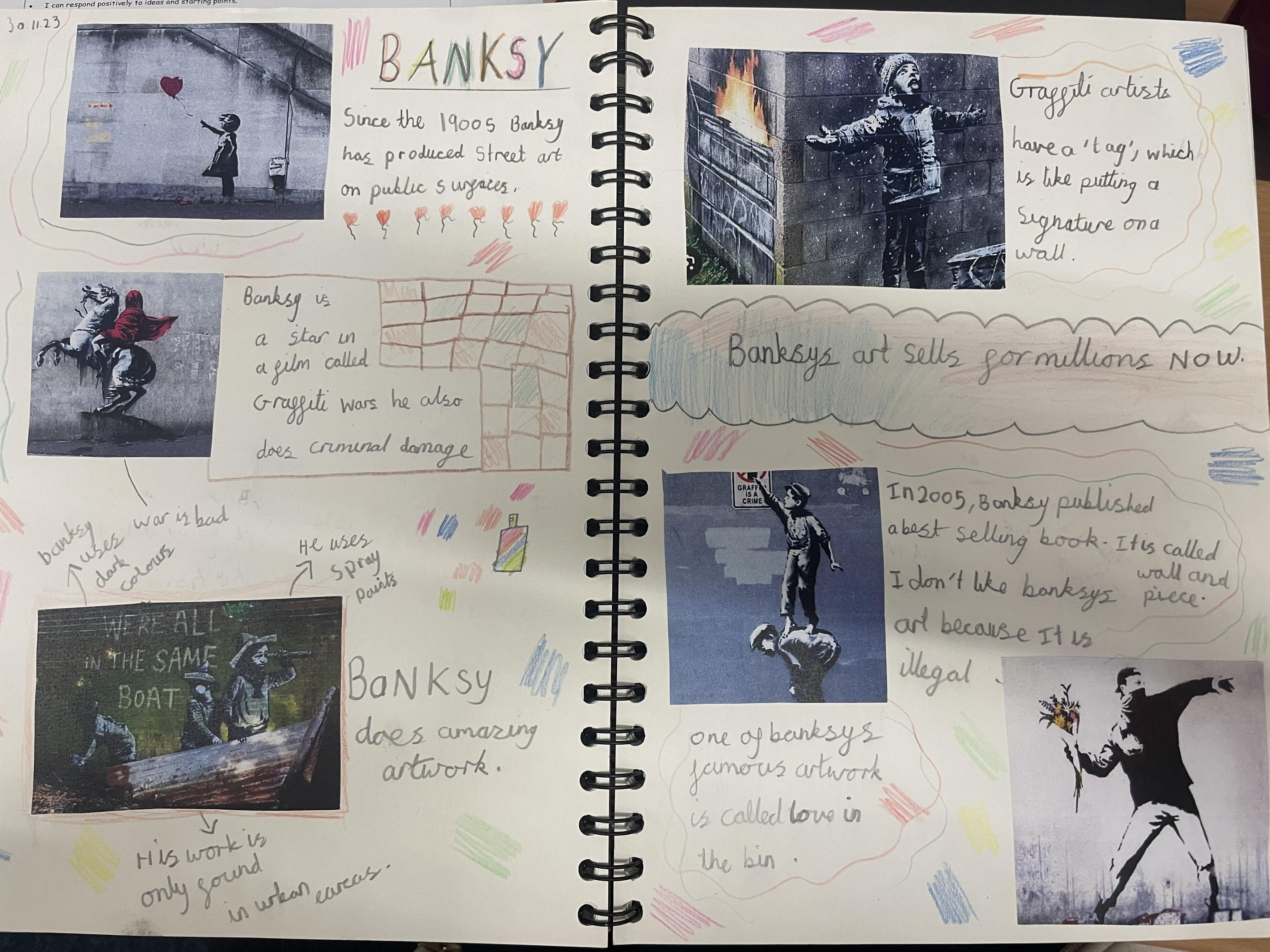 In years 5 and 6, children continue to use sketchbooks to record their ideas and research as well as experimenting with different materials. Pupils use technology to research notable artists, their lives and their work and record their findings in their sketchbooks. They also use their sketchbooks to think critically about pieces of artwork we have discussed, share their opinions and to offer feedback on their own and others pieces of art.