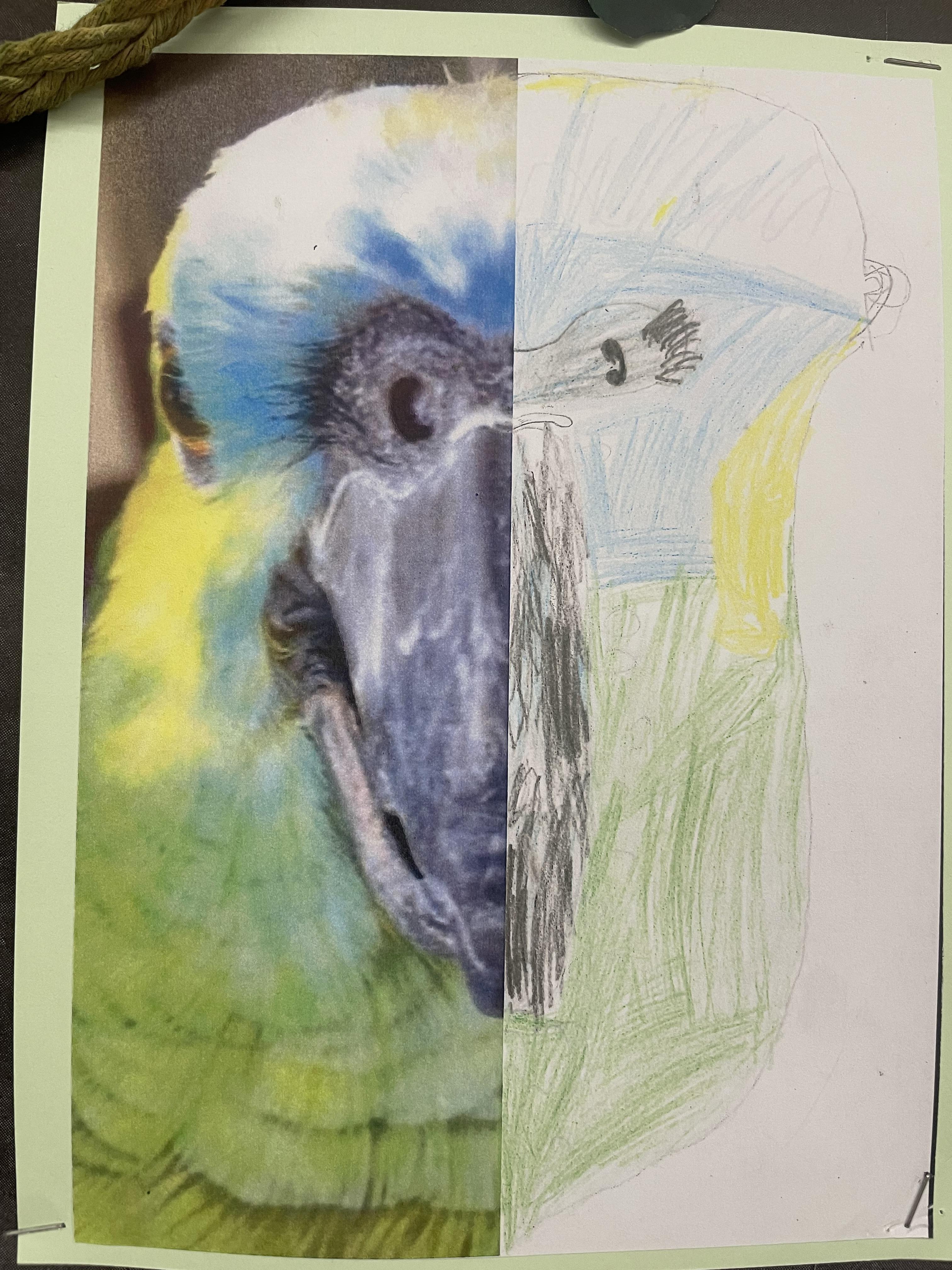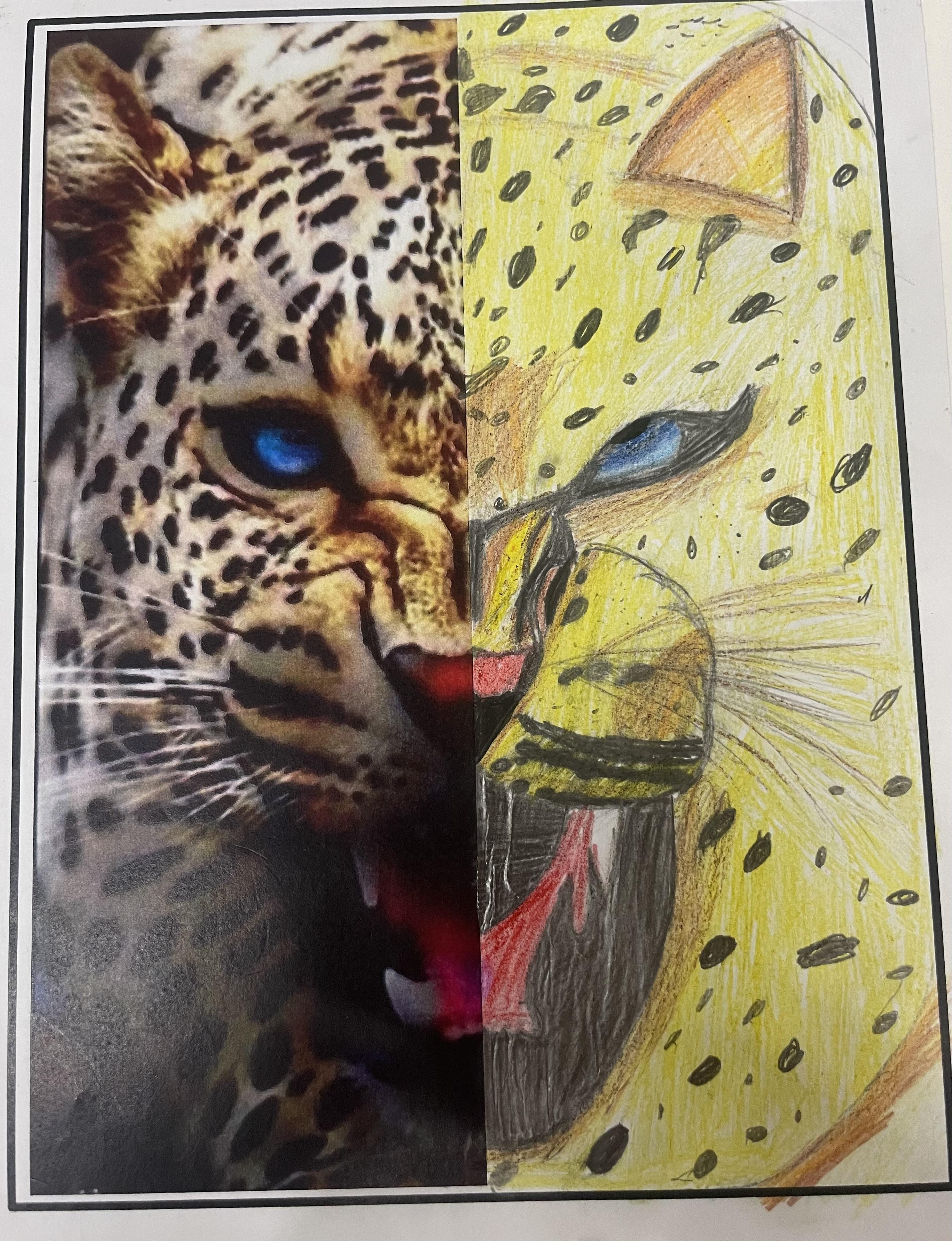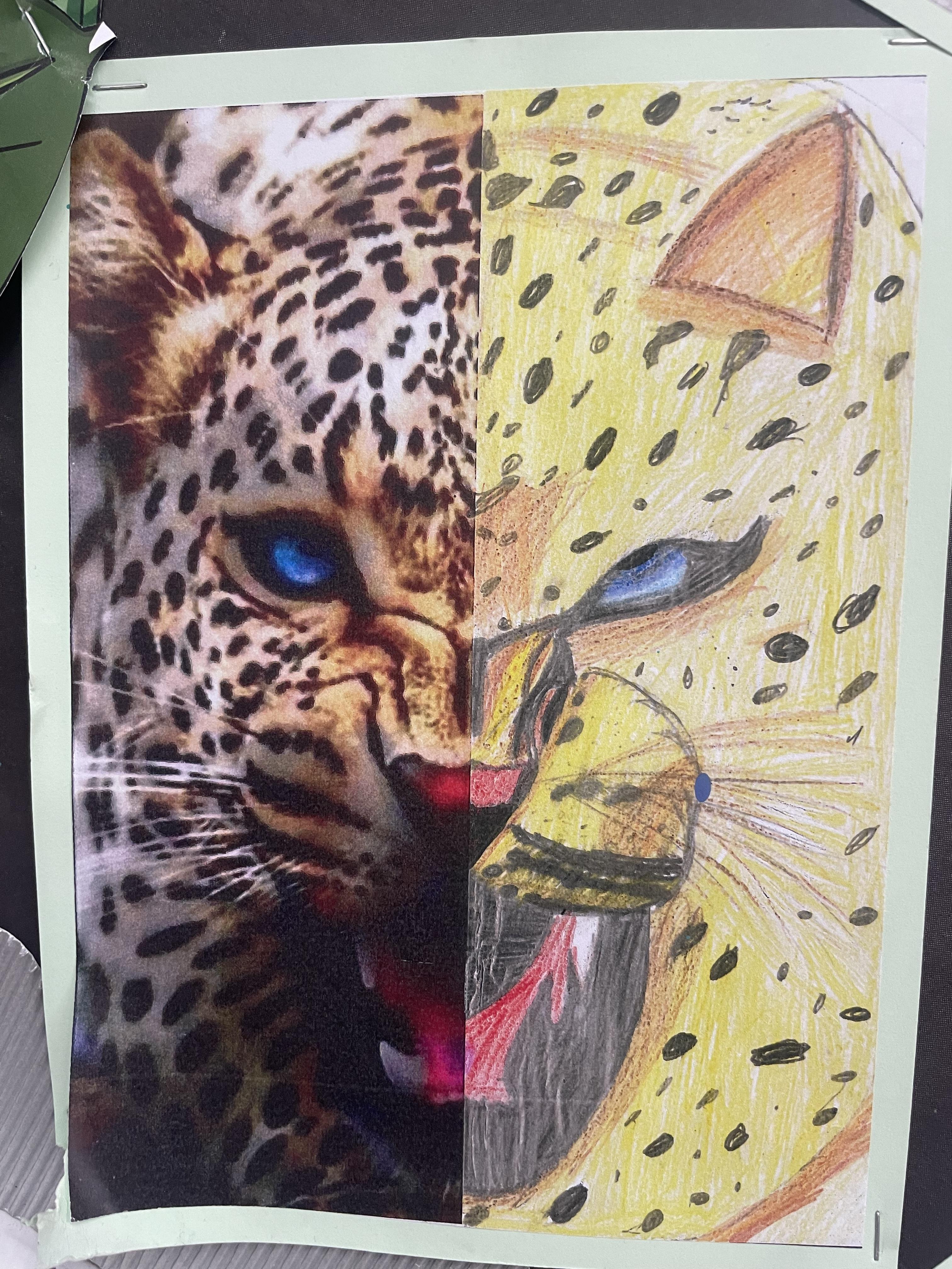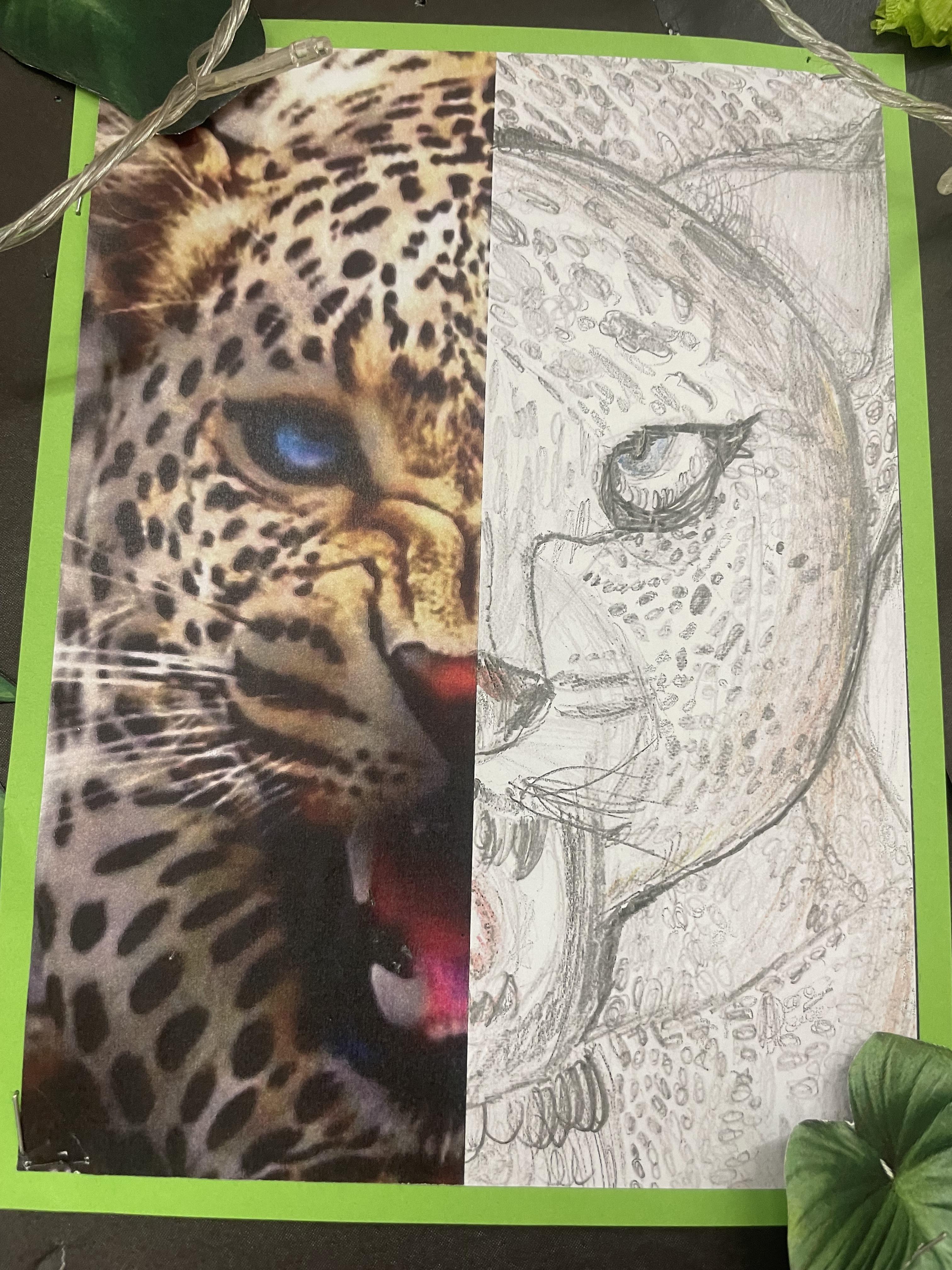 When learning about South America, children in years 5 and 6 create drawings of animals in movement and in different positions. They use their skills to create light, shade and texture in their drawings and choose different materials to create effect. They they use reflection to position animals features such as eyes and create symmetry in their drawings. Finally, they incorporate digital images in their drawings to create their final pieces of work.
