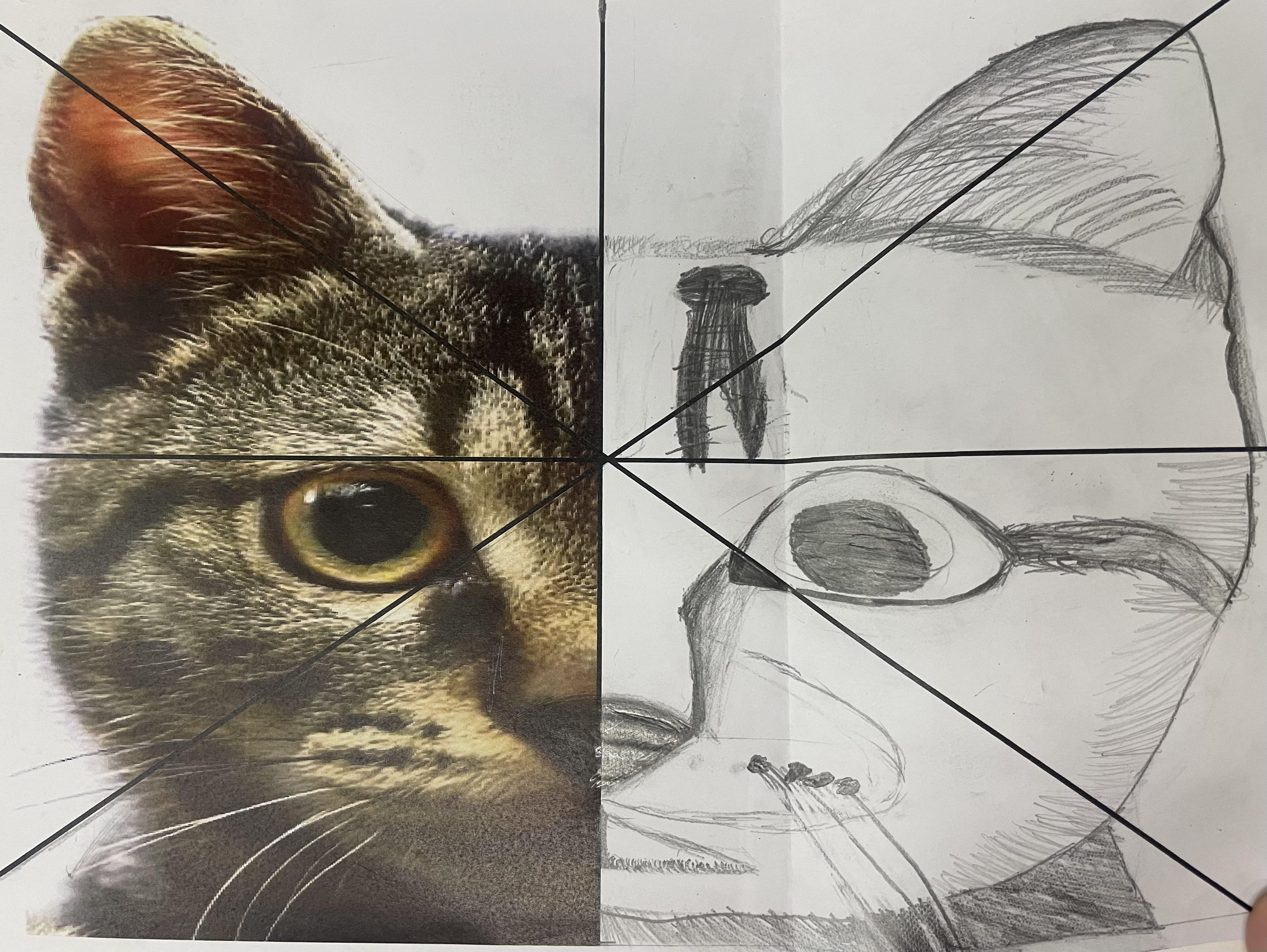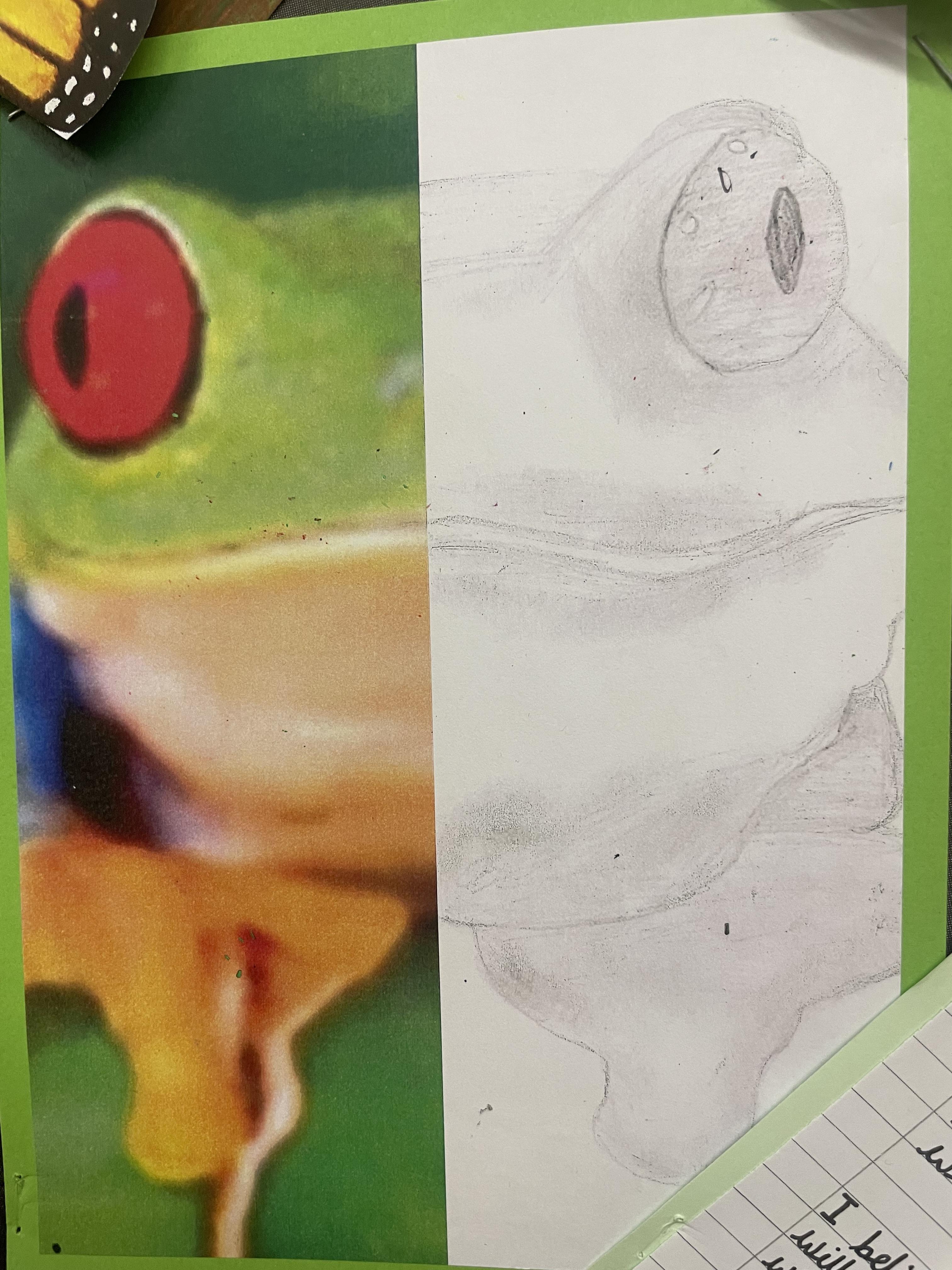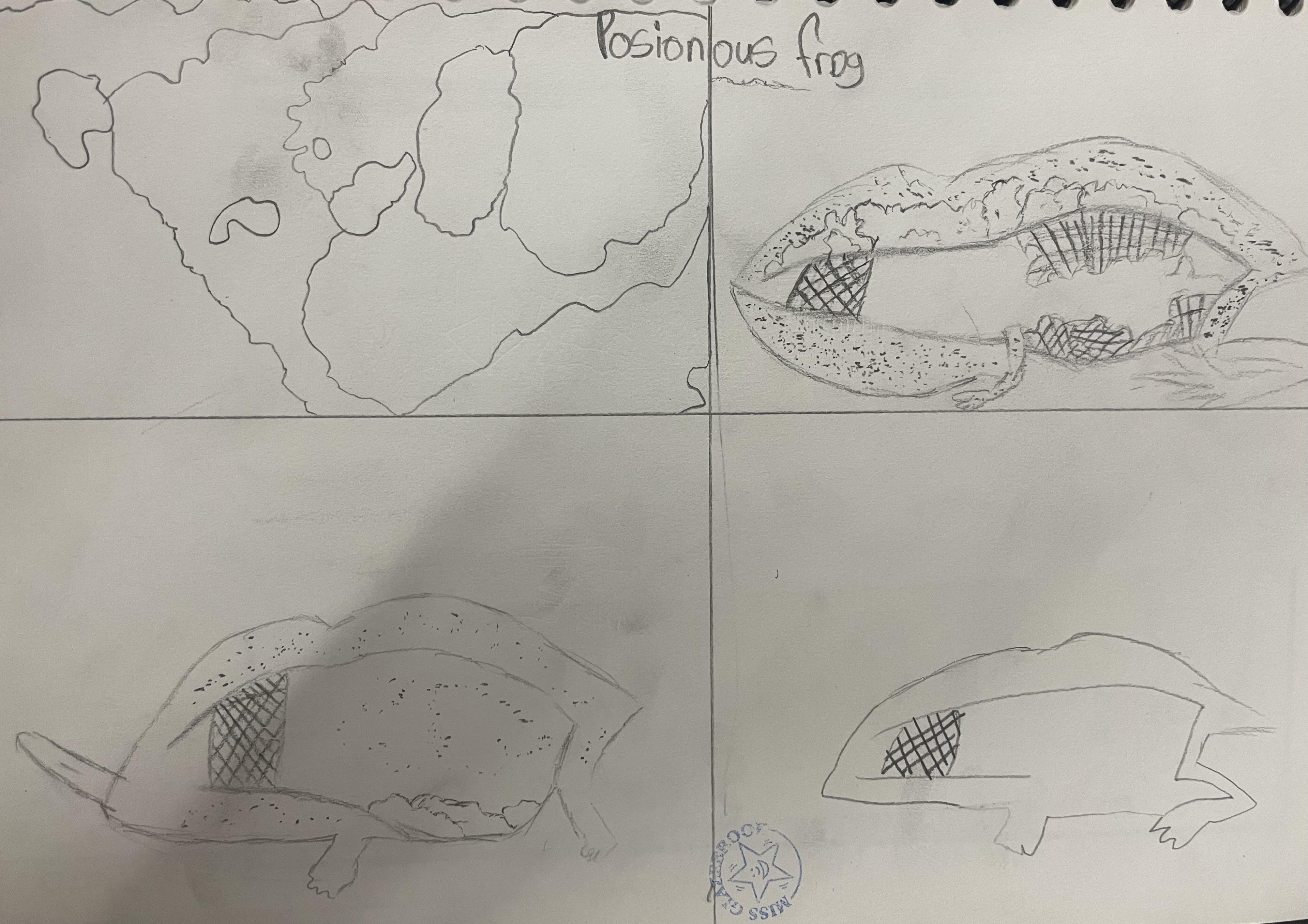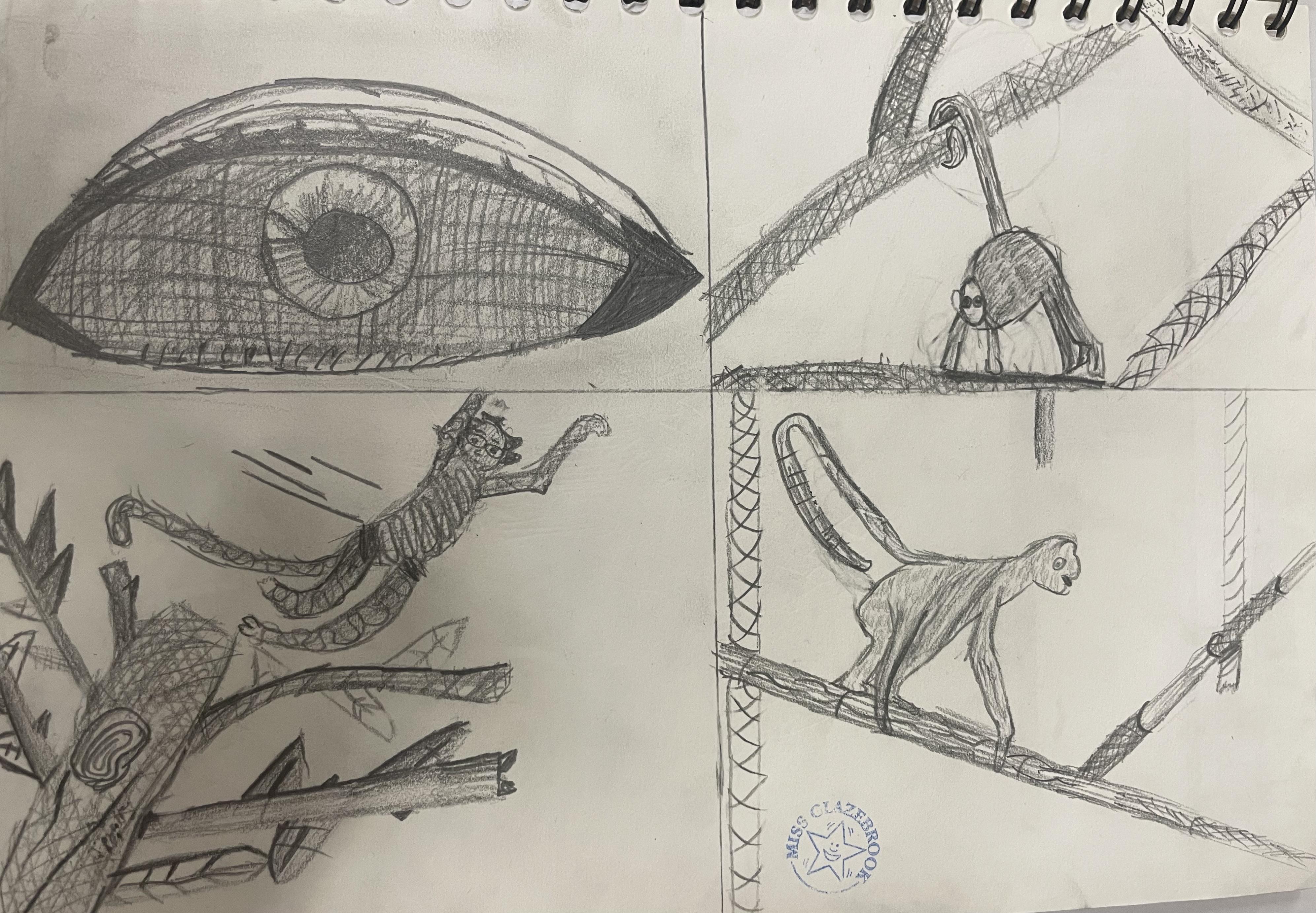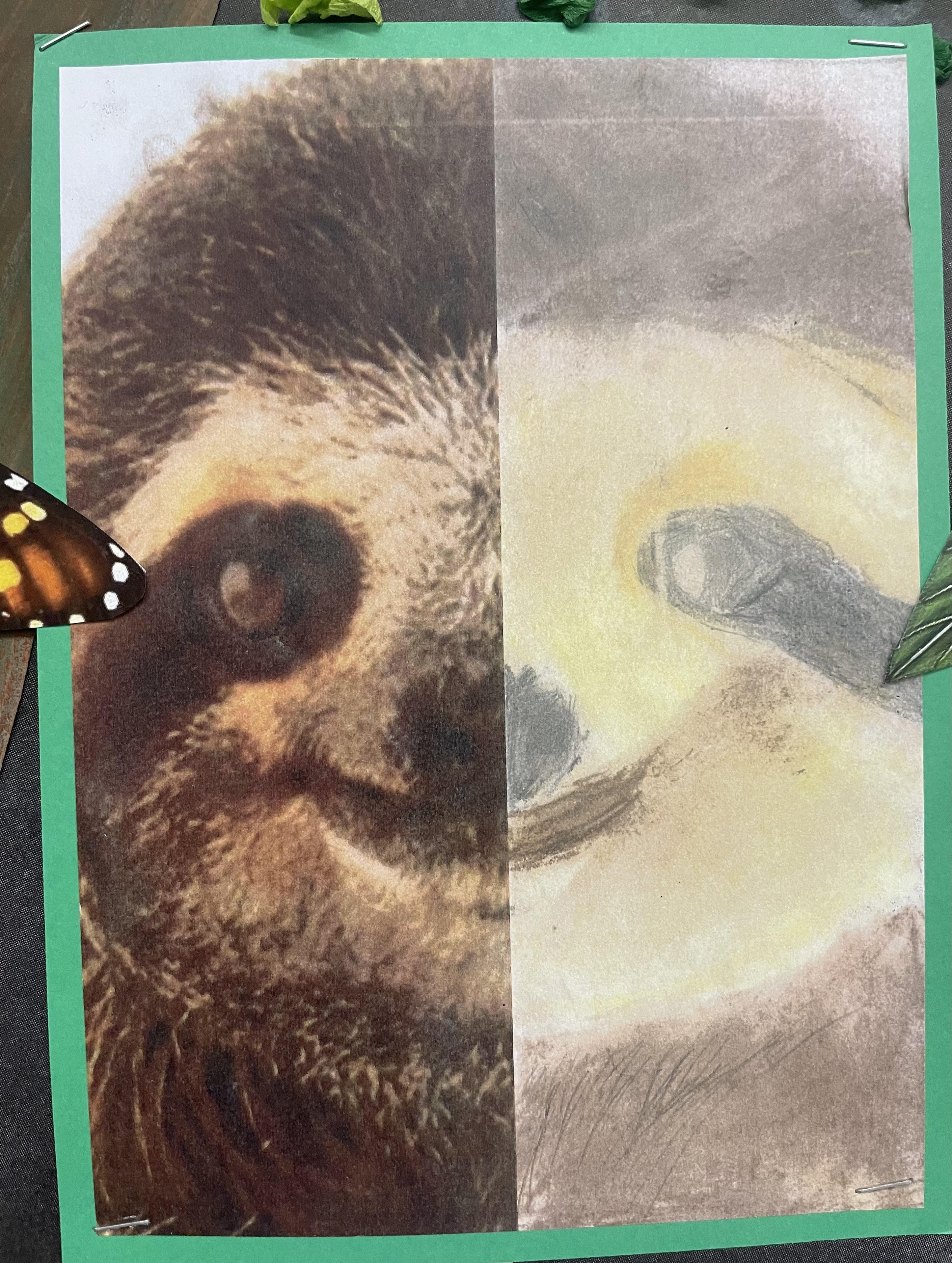 When learning about South America, children in years 5 and 6 create drawings of animals in movement and in different positions. They use their skills to create light, shade and texture in their drawings and choose different materials to create effect. They they use reflection to position animals features such as eyes and create symmetry in their drawings. Finally, they incorporate digital images in their drawings to create their final pieces of work.