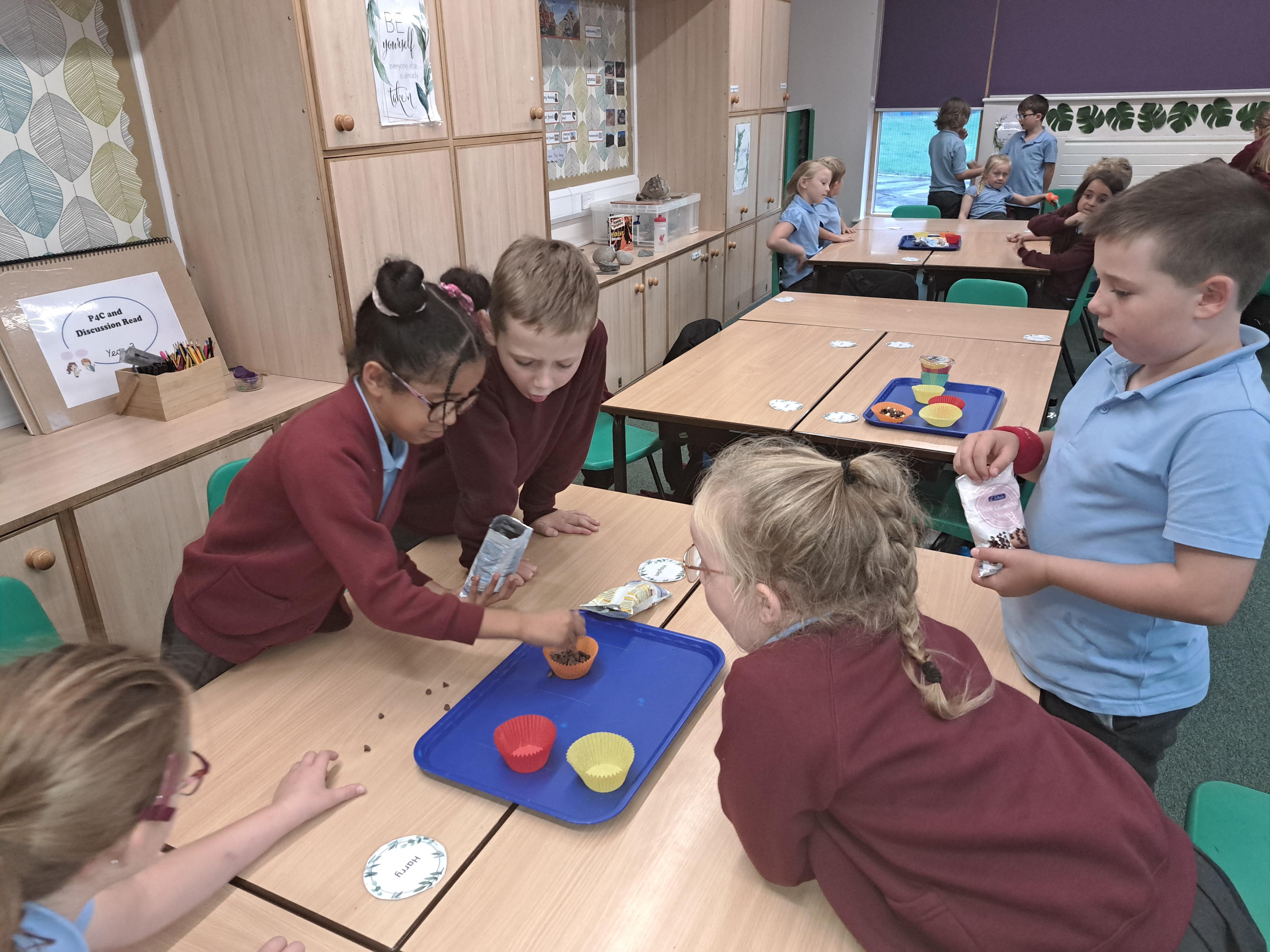 PLANTS: We dissected plants to learn about how they were constructed and the names of the different parts. We also investigated plants in different conditions and measured how they grew over 3 weeks.