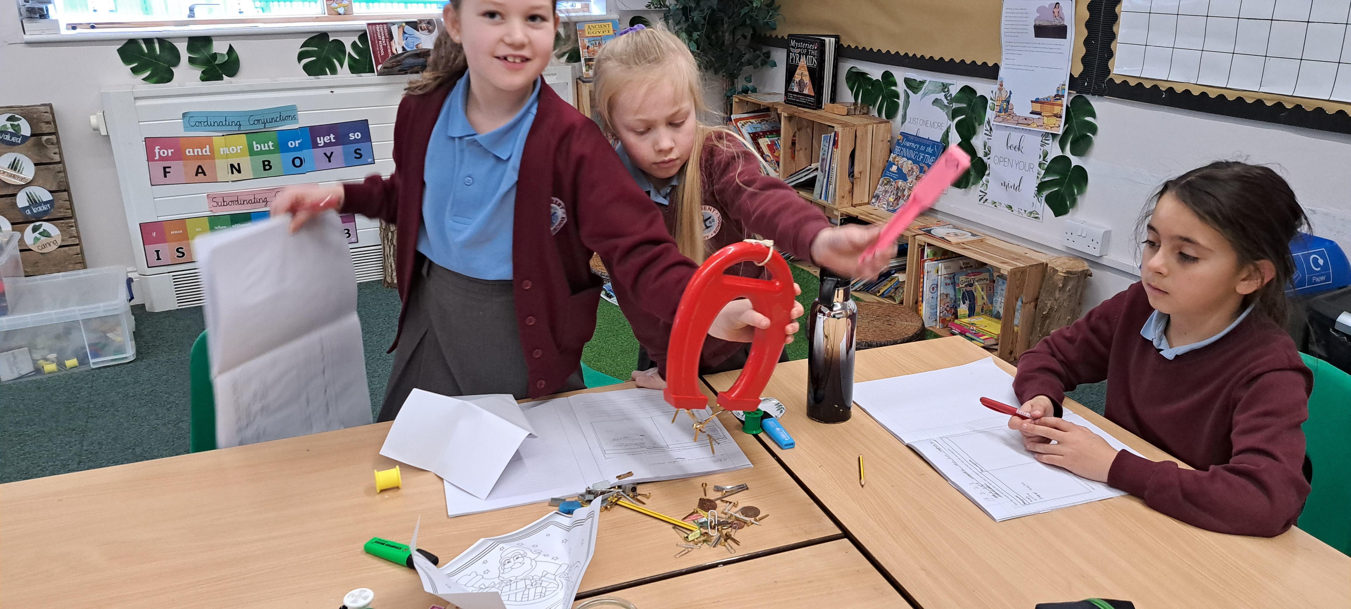 FORCES AND MAGNETS: We enjoyed a scrapyard challenge to help us understand what materials are magnetic and we made magnet mazes.